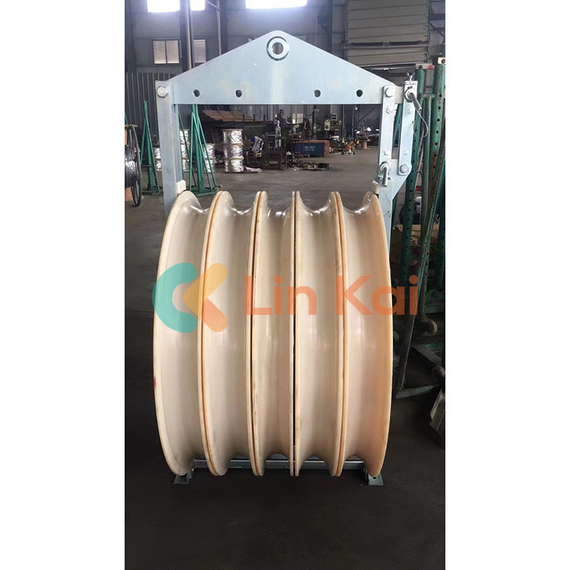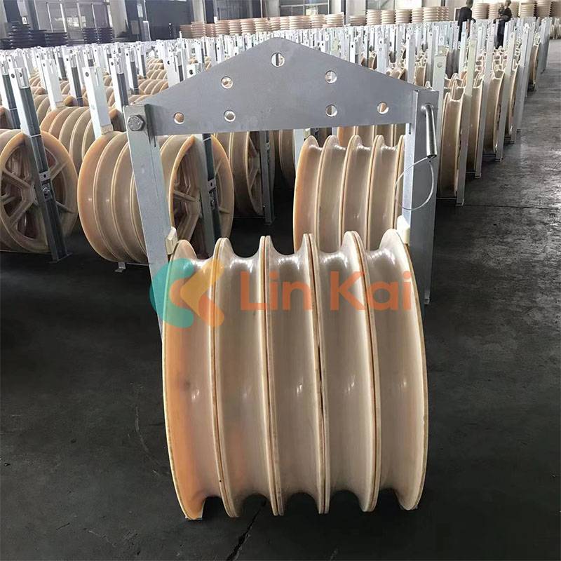 بالنسبة لـ ACSR 630، يتم استخدام كتل توتير الموصل مع عجلات نايلون كبيرة مقاس 822 مم. يمكن أيضًا استخدام هذه الكتل لدعم خطوط الاتصال وOPGW وADSS والموصلات. يتم إنتاج العديد من نماذج كتل توتير الموصلات بواسطة شركة China Ningbo Linkai لتطبيقات مختلفة في تركيب خطوط النقل العلوية. كتل توتير الموصلات المصنوعة في الصين: تستخدم لإخراج خطوط النقل بأربعة موصلات مقسمة في الأعلى.